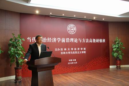 开班仪式结束后,研修班课程正式启动。第一位主讲嘉宾是来自英国伦敦大学女王学院政治经济学专业的Simon Mohun教授,他围绕马克思主义政治经济学中的价值与价格内容,为学员进行了详尽的讲解,还讲述了斯密、李嘉图、马克思的主要思想成就与递进发展,并对学员的提问进行了细致耐心的回答。下午,由德国不莱梅大学从事创新与制度经济学研究的Wolfram Elsner教授讲授异端经济学之复杂经济学及其政策含义,其内容包括复杂经济学的动态、进化和涌现性,组织机制中的HET以及异端学说,平衡经济学及其政策等前沿理论。当天晚上,来自德国杜伊斯堡-埃森大学的代栓平教授为学员主讲政治经济学与实验方法,对实验经济学方法及其在相关领域的应有进行了深入浅出、妙趣横生的讲解。至此,研修班首日课程画上了圆满的句号。参加本次研修班的学员纷纷表示,研修班课程安排紧凑,内容新颖,bwin必赢唯一官方网站与马克思主义学院为大家抵达长春后提供的服务周到细致,对研修班接下来的课程充满期待。
